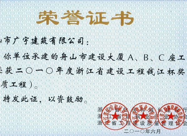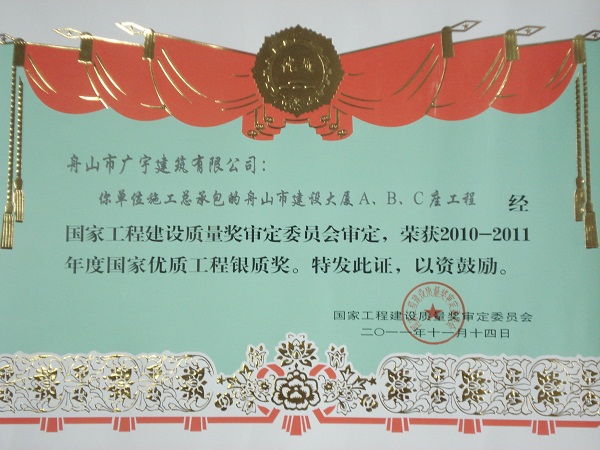 2010-2011年度国家优质工程奖银质奖(舟山建设大厦C座)